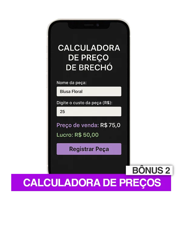 O Método definitivo para você iniciar com baixo investimento e fazer as primeiras vendas de roupas usadas pelo triplo do preço. Aprenda no ebook exclusivo!